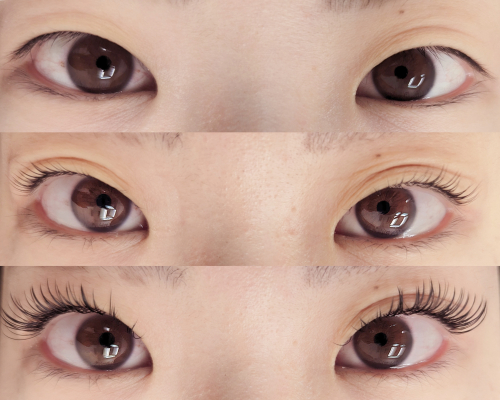 ラッシュリフトをかけてからエクステをつけるとによって目元がパッチリします。